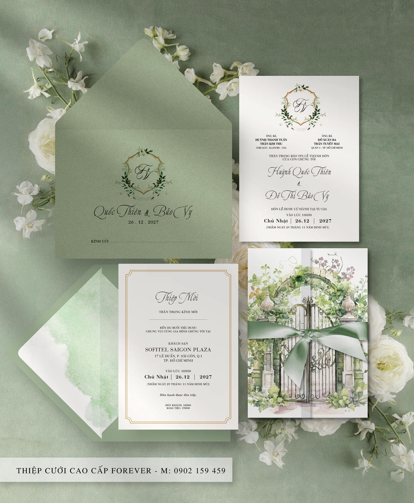 BỘ THIỆP CƯỚI “GREEN GARDEN” – SẮC XANH CỔ TÍCH CHO NGÀY TRỌNG ĐẠI
